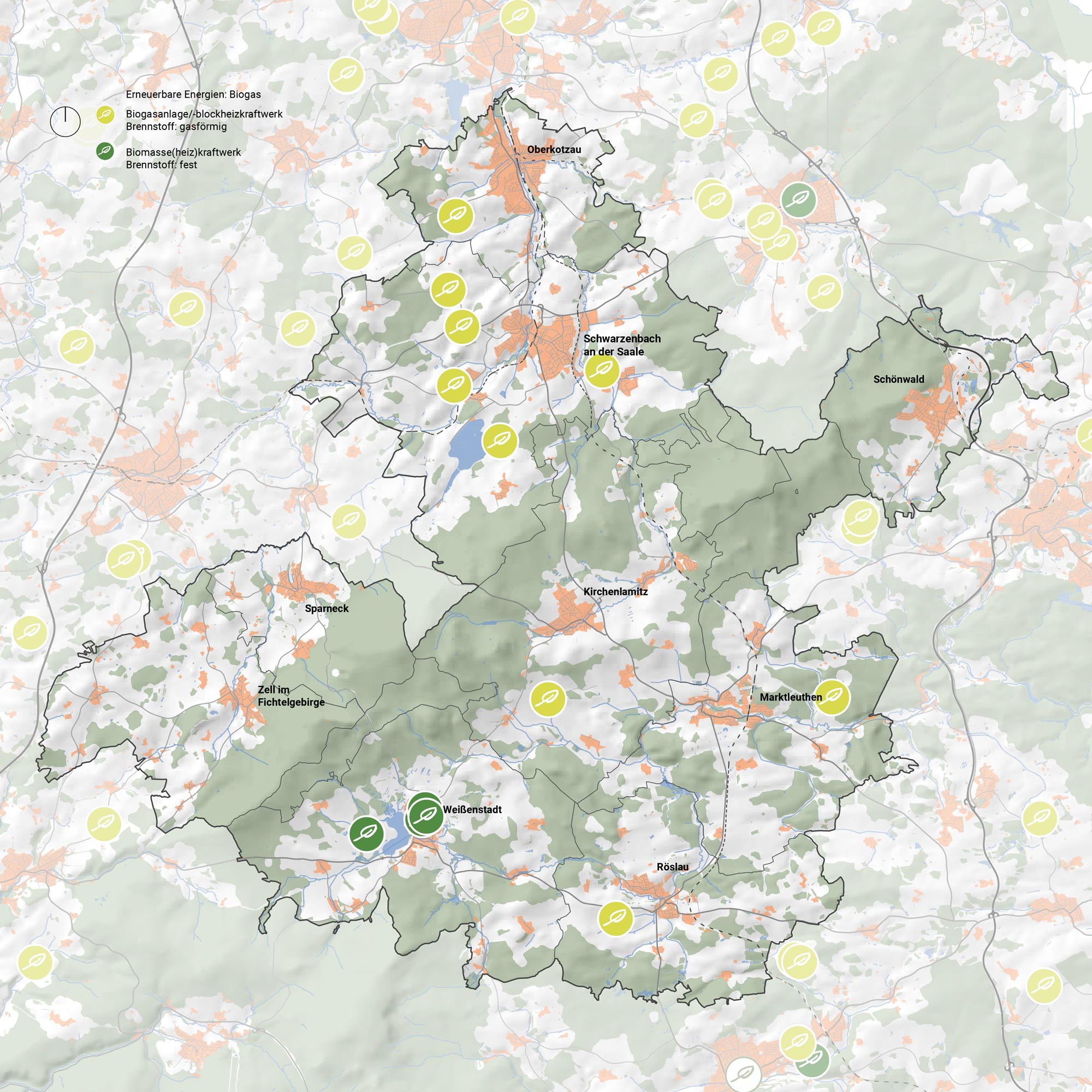 Die ländliche Raumstruktur des NöFis bietet ein enormes Potential für die Energiegewinnung und eine C02-freie Energieversorgung der Region. Auf dieser und den folgenden Seiten sind die bestehenden Standorte von Erneuerbaren Energien im NöFi nach dem Energieatlas Bayern dargestellt; u.a. von Biogasanlagen und Biomasse(heiz)kraftwerken, von Solaranlagen auf Dach- und Freiflächen und von Wasserkraftwerken, Erdwärmesonden und Windkraftanlagen.