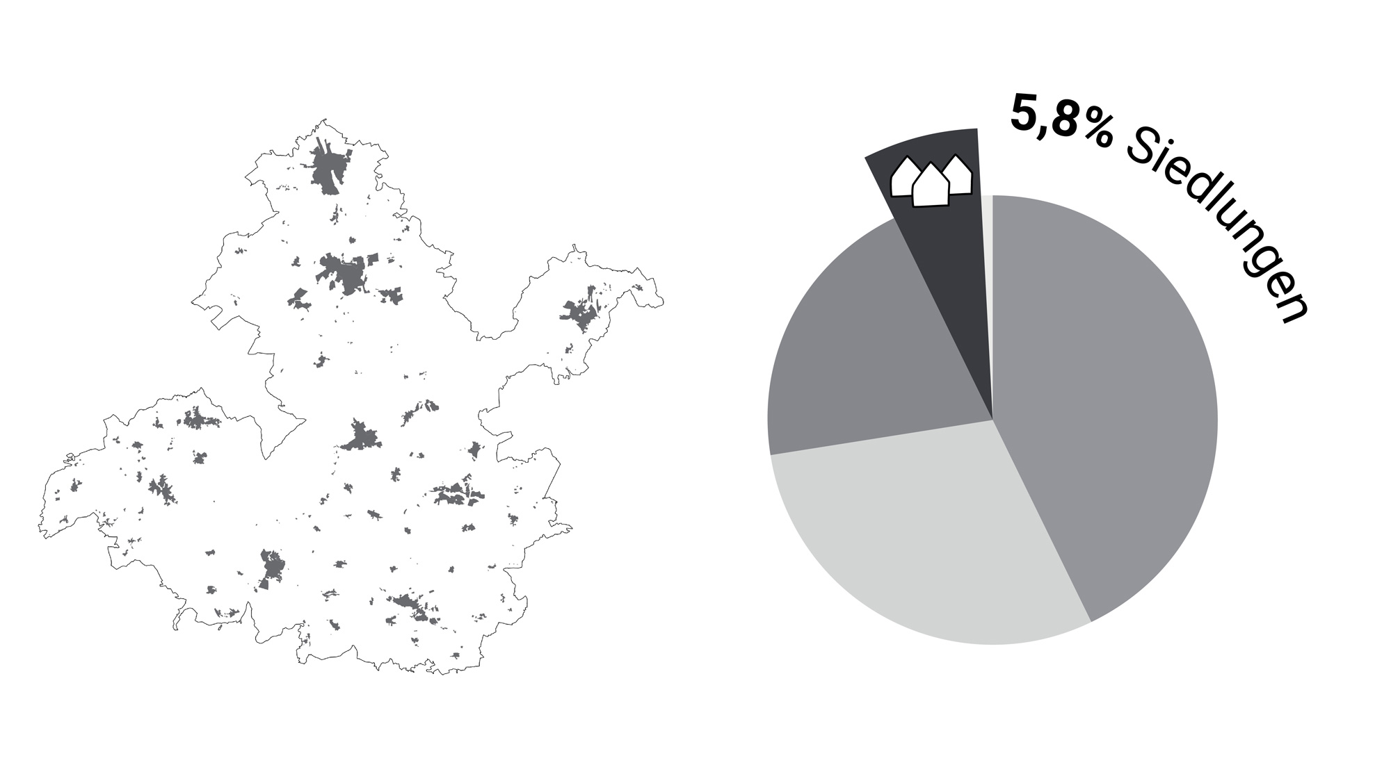 Siedlungsanteil: Die Darstellung und Berechnung der Flächenanteile beruht auf Landnutzungsdaten des Corine Land Cover 5 (Flächen generalisiert auf 5 Hektar Mindestgröße) des Bundesamtes für Kartographie und Geodäsie (https://gdz.bkg.bund.de/index.php/default/open-data/corine-land-cover-5-ha-stand-2018-clc5-2018.html)