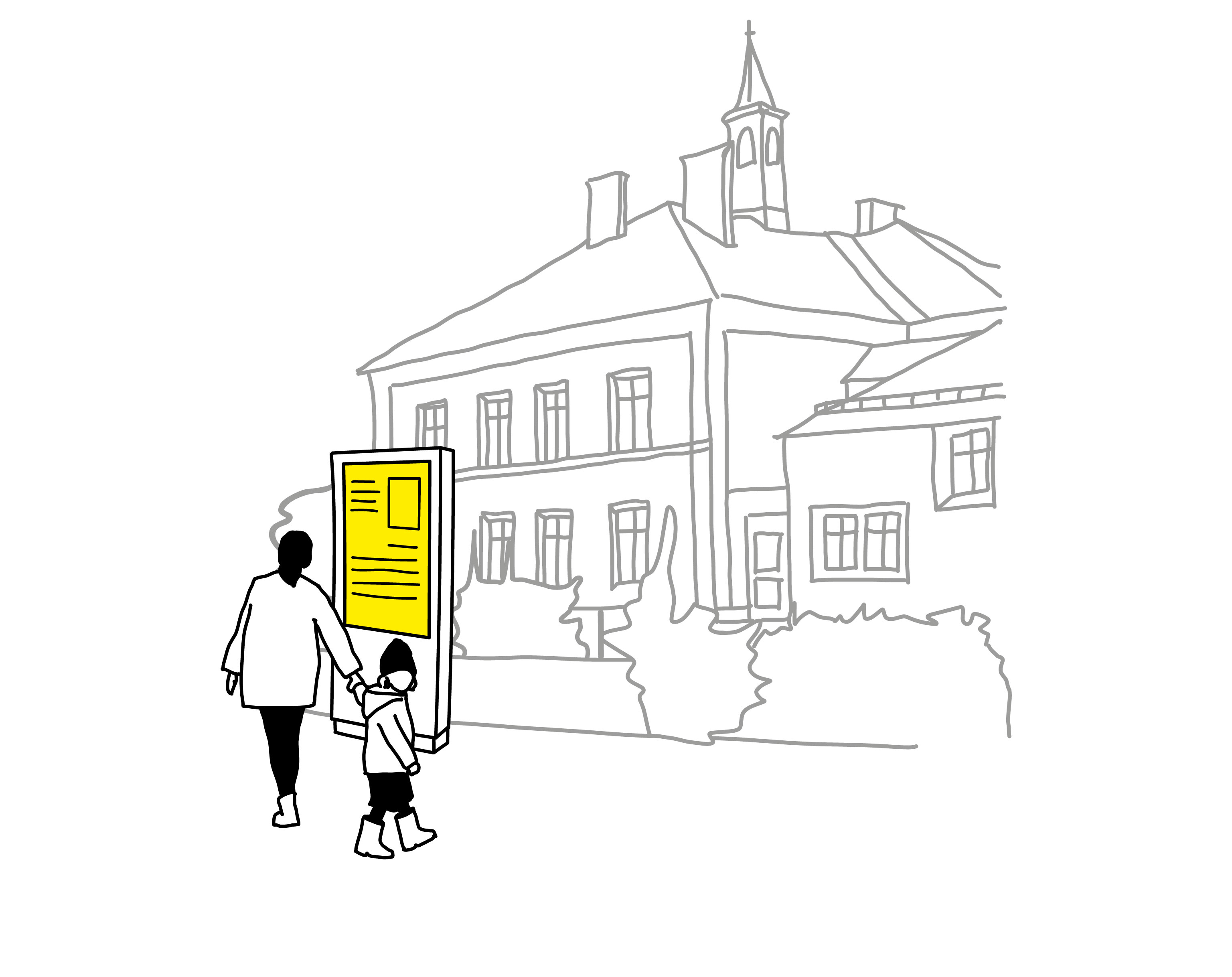 Informationsstelen sind Displays, die im öffentlichen Raum platziert werden. Sie dienen der Kommunikation, indem sie es ermöglichen Bürger*innen unmittelbar und in Echtzeit über aktuelle (kommunale) Themen zu informieren. Interaktive Informationsstelen lassen sich zudem individuell bedienen und erlauben es den Nutzern sich eigenständig über Ihre Wunschthemen zu informieren. Inhalte können beispielsweise Hinweise auf Veranstaltungen und Events sein, Orientierung im Raum bieten oder über die Geschichte eines Ortes informieren.